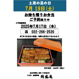 2025年7月19日 土用の丑の日 お弁当持ち帰りご予約承り中